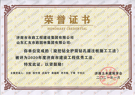 2020年度濟南市建設工程優秀工法《旋挖鉆全護筒鉆孔灌注樁施工工法》