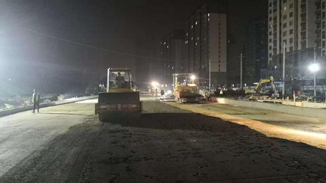 在龍脊河西側,綜合管廊回填及路床施工是節點能否按期完成的決定性因素,而北側DN1500的雨水管是管廊回填的一個重要制約點。雨水溝挖深距現狀地面7米,管徑大, 挖槽、下管、回填都很困難,而且和綜合管廊回填沖突,“管廊回填必須按期完成,雨水管這塊硬骨頭必須提前拿下!”在飛躍大道項目部職工日夜奮斗下,從10月7日至11日僅5天時間便完成雨水管施工任務,綜合管廊回填也克服了中秋和國慶兩個假期的斷點,在規定工期內完成任務。