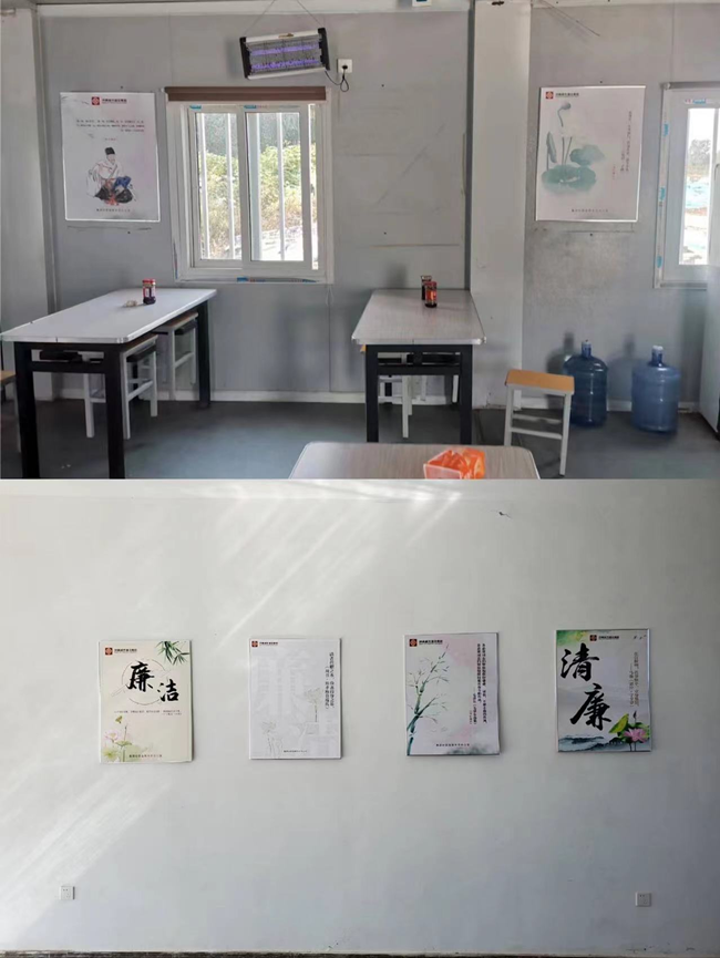為持續推進黨風廉政建設,筑牢拒腐防變思想方向,營造廉潔文化工作氛圍,市政公司各項目部積極響應集團號召,在辦公區、食堂等地方懸掛了廉政文化宣傳圖牌,打造廉潔文化空間,形成了一道靚麗的風景線,有力地推動了公司廉政文化建設的深入開展。